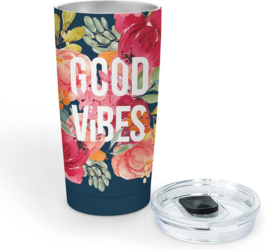 Good Vibes Floral - Insulated Stainless-Steel 17oz Travel Mug