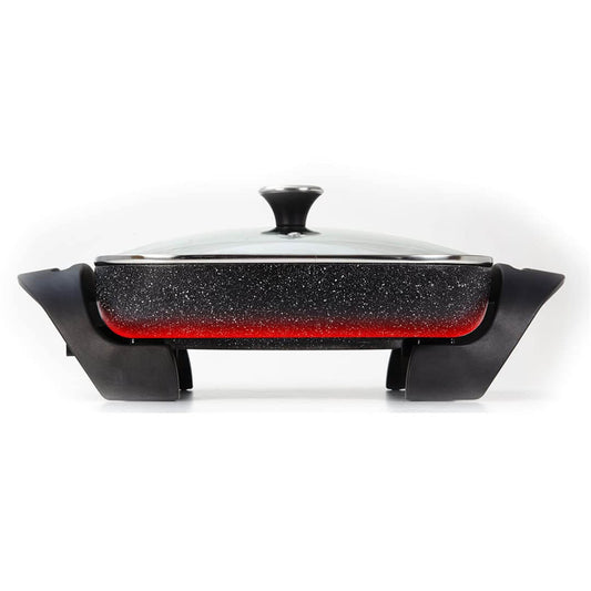 Starfrit The Rock Electric Skillet - 12" x 12" - Rock.Tec Non-Stick Cooking Surface - Tempered Glass Lid - 1200W