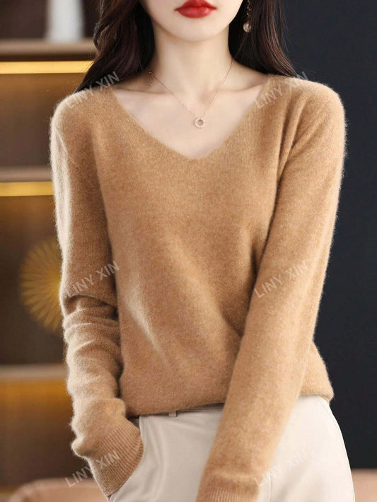 Merino Luxe: V-Neck Seamless Knit Sweater- 100% Merino Wool