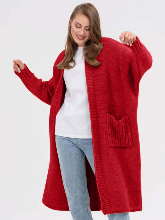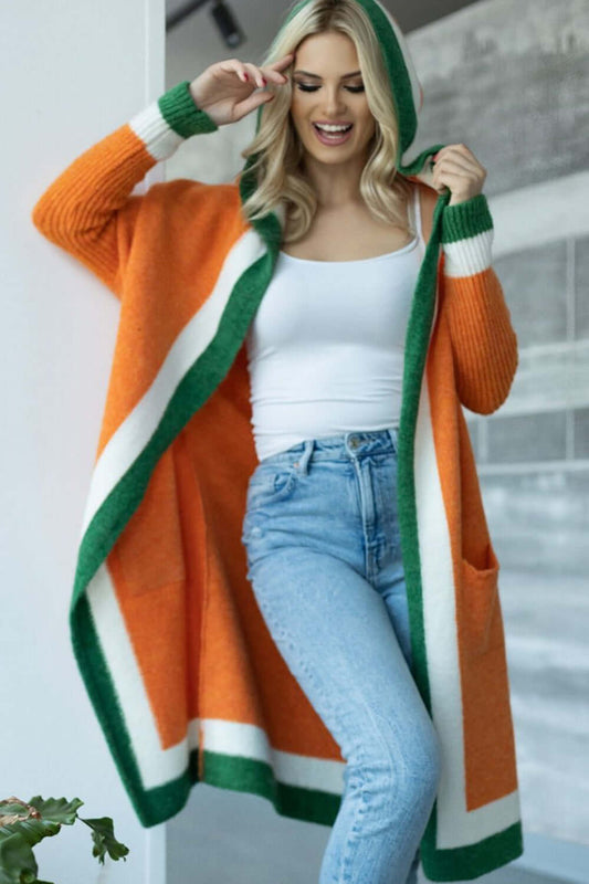 Cozy Contrast Hooded Open Front Cardigan with Pockets